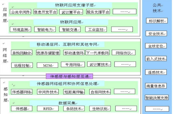 物联网工程技术分为感知层的核心技术、网络层的核心技术、应用层的核心技术和公共制程技术。