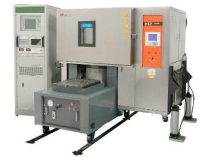 (3)环境模拟实验系统。动力电池常用的应用环境模拟包括温度、湿度以及在车辆上应用时随道路情况变化而出现的振动环境。因此,在环境试验方面主要考虑这三个方面。可采用独立的温度试验箱、湿度调节试验箱、振动试验台进行相天的单一素影响的动力电池环境模拟试验。但在实际的动力电池应用工况下,是三种环境参数的耦合,因此,在环境模拟方面有温、湿度综合试验箱以及温度、湿度和振动三综合试验台。为考核电池对温度变化的适应性,还需要设计温度冲击试验台,进行快速变温情况下电池的适应性试验。下图为温湿度振动复合式环境箱。