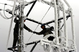 2008年1月,持续的冻雨把美丽的雪花演变成了一场惊天大灾。担负长沙1/4供电任务的华沙线,覆冰超过了承载极限的两倍。罗海文、罗长明、周景华所在的302队的18名抢修队员,奉命前往望城县抢险。他们三人一组,负责43号铁塔的除冰任务。此时,塔上覆冰已超过50毫米。这厚厚的冰层在示警:铁塔随时可能垮塌。三个男子汉,谁也没有多说一句话,谁也没有迟疑一丁点,坚定地冲了上去。