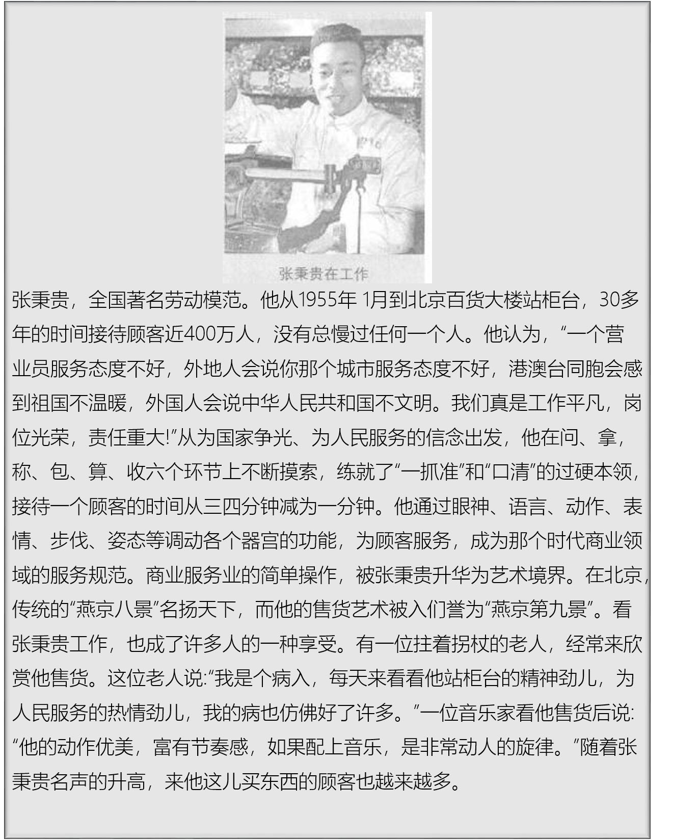 案例1:大爷听后,满意地点点头,并起身指着两条刚刚试过的900多元的裤子说:“姑娘,这两条裤子我买了,帮我开票吧!我去过很多地方,但只有你们的服务最让我满意,你非但没有因为我的穿着破旧而瞧不起我,还对我像对家人一样,让我心里很温暖,以后,我买东西一定还来这里,一定还找你!”