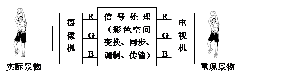 ②需要将摄像机输出的三基色信号转换成一个亮度信号,以及代表色度的两个色差信号,并将它们组合成一个彩色全电视信号进行传送。在接收端,彩色电视机将彩色全电视信号重新转换成三个基色信号,在显像管上重现发送端的彩色图像。