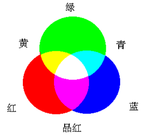 三基色相加的结果如图3-2所示。如果r[R]、g[G]、b[G]三个分量各占一个字节(8 位),这样共可表示2^24=16 777 216种颜色。