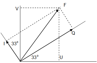 YIQ颜色模型的I、Q与YUV模型的U、V虽也为色差信号,但它们在色度矢量图中的位置却是不同的。Q、I正交坐标轴与U、V正交坐标轴之间有33o夹角,如图3-6所示。