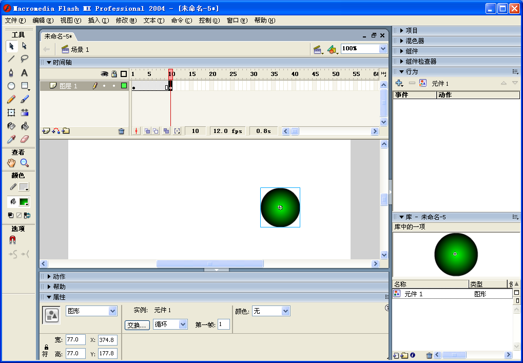 本例包含了动画制作的全部流程,也包含了动画制作的原理:基于时间轴的组件属性变化,如位置、颜色、透明度等,构成了动画的基础。