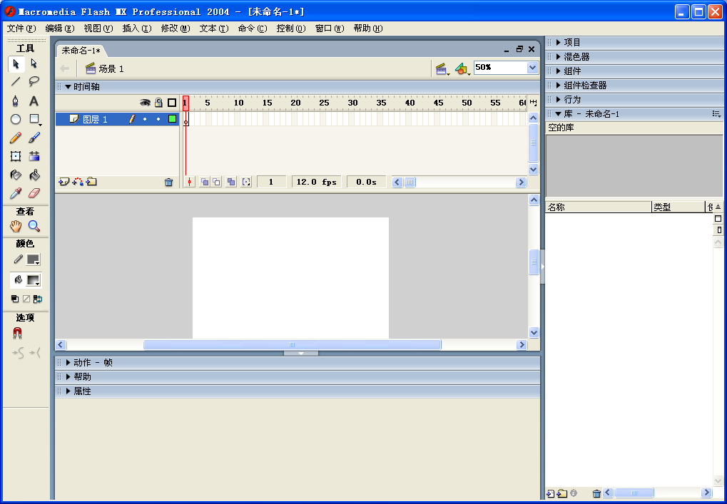 (1)打开Flash软件,并新建一个文件,得到如图6-8所示界面。