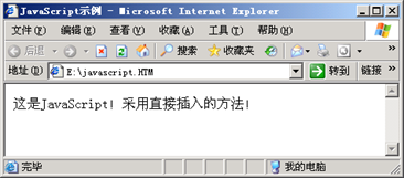 这是最常用的方法,大部分含有JavaScript的网页都采用这种方法,如下的HTML文档(javascript.htm)中就嵌入了JavaScript代码。