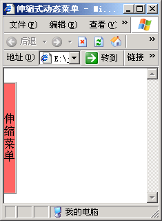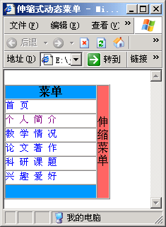 设计一个具有伸缩式动态菜单在浏览可视区的左边界,当把鼠标移动到这个区域时,菜单就伸展开,而当鼠标离开菜单时,这个菜单又缩起来。在浏览器中显示的效果如图所示。