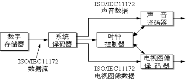 下图为MPEG-1译码器方框图。图像流包含画面信息,伴音流包含声音信息,系统流实现图像和伴音的同步,所有播放MPEG图像和伴音数据所需的时钟信息都包含在系统流中。