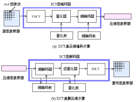 JPEG包含两种基本的压缩算法:无损压缩算法(基于差分脉冲调制 )和有损压缩算法(基于离散余弦变换 )。