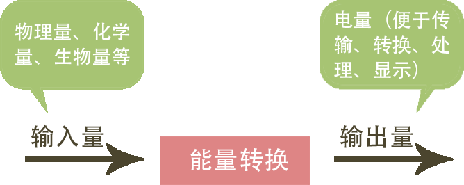 传感器的作用是将被测非电物理量转换成与其有一定关系的电信号。传感器获取的信息正确与否,直接影响整个检测系统的精度。根据国家标准(GB/T7665-2005),传感器(Sensor/Transducer)是能够感受规定的被测量并按照一定的规律转换成输出信号的器件或装置。它的输入量是某一被测量,可能是物理量,比如温度、压力、速度等,也可能是化学量、生物量,如浓度、酸碱度等。它的输出量是便于传输、转换、处理、显示的电信号。