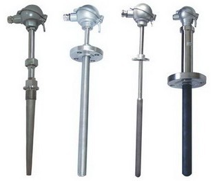 (a)膨胀式温度计 (b)热电阻传感器 (c)热电偶