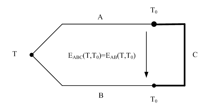 图3-5 热电偶中间温度定律示意图
