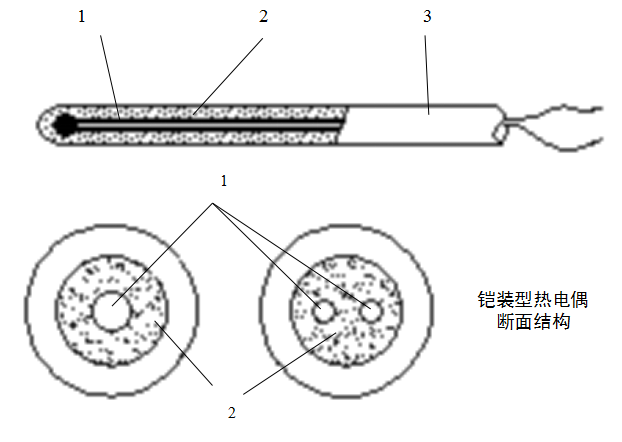 1-热电极 2-绝缘材料 3-金属套管