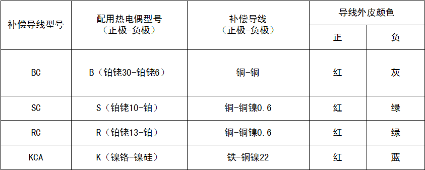 补偿导线使用时需注意的是在规定的温度内使用补偿导线,两根补偿导线与热电偶的两个热电极的接点温度必须相同,且极性不能接反;各种补偿导线只能与对应型号的热电偶配用。表3-2所示为常用的补偿导线型号和参数