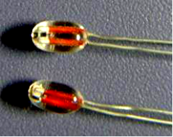 热敏电阻是由一些金属氧化物,采用不同比例配方混合,研磨后加入粘合剂,埋入适当引线(铂丝),挤压成形再经高温烧结而成。其形状有珠型、片型、柱型、铠装型等,如图3-14所示。