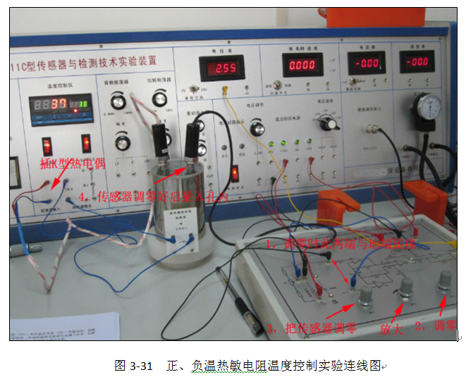 电阻值随温度升高而下降的热敏电阻被称为NTC热敏电阻,它的材料主要是一些过渡金属氧化物半导体陶瓷。从图3-13可以看出NTC热敏电阻的温度-电阻特性曲线线性度较好,严格按照负指数关系变化,可以用于物体表面温度、温差、温场等测量,也可以用于自动控制及电子线路的热补偿线路。