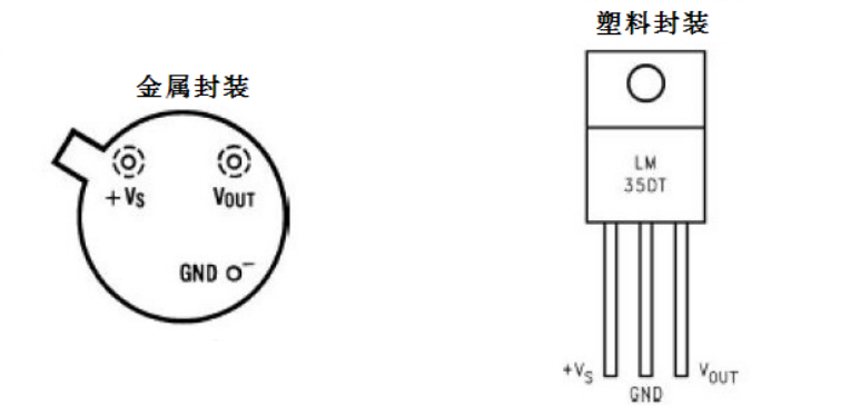 LM35是美国NS公司生产,其输出电压线性地与摄氏温度成正比(+10mV/℃),是电压型集成温度传感器。其有三种封装形式:塑封、金属外壳,如图3-18所示。检测精度为0.4℃~0.8℃,测量范围-55 ℃~+150℃,工作电压4V~30V,非线性为±0.25 ℃。