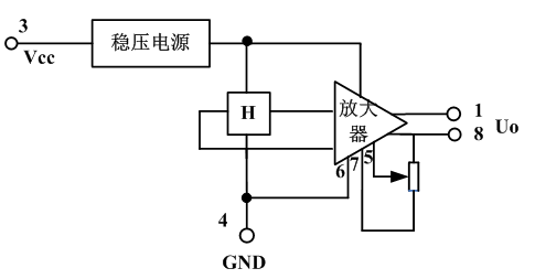 线性型霍尔集成电路一般由恒流源、霍尔元件、放大电路等组成,其特点是输出电压与外加磁场强度呈线性关系,所以一般用于检测磁场强度。