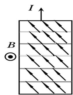 图4-15 自由电子的运动轨迹的偏移 图4-16 圆盘形磁敏电阻(有磁场作用时)