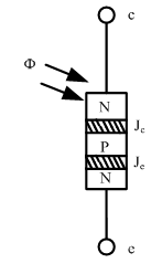 图4-25 光敏三极管的结构、等效电路和图形符号