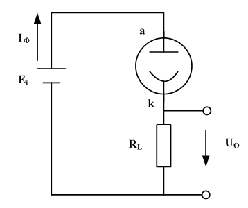 图4-19 光电管的结构 图4-20 光电管的符号及测量电路