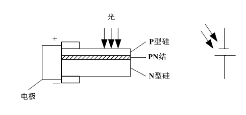 光电池实质是一个大面积的PN结, 当光照射到PN结的一个面,产生很多自由电子和空穴, 电子空穴对从表面向内迅速扩散,如果光照是连续的,经短暂的时间,PN结两侧就有一个稳定的光生电动势输出。
