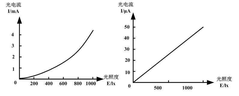 光照特性是指光电元件的光电流和光电元件上的光照度E的对应关系,用