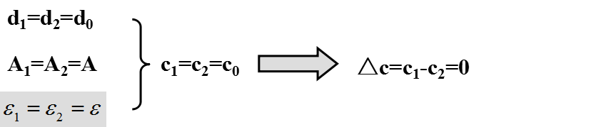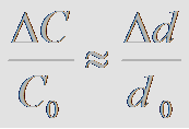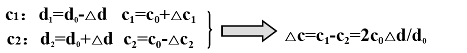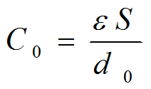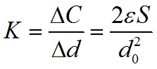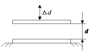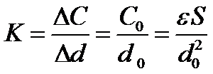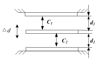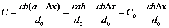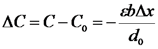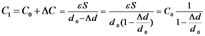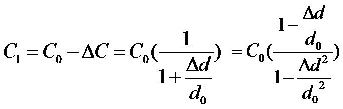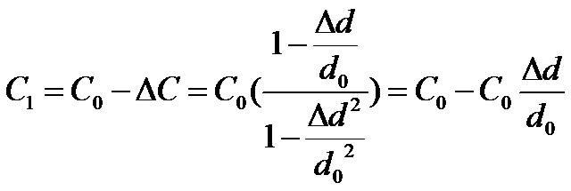 b)电容受外力作用,极距减小△d电容器容量变为: