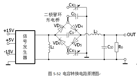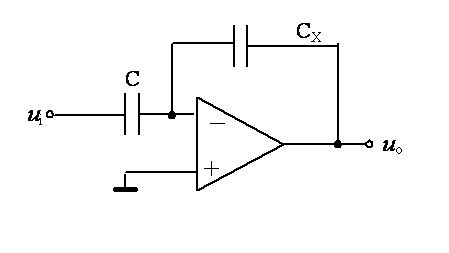 采用集成运算放大器构成,将传感器电容接在运算放大器的反馈端,运算放大器的输出电压(以变极距式为例)