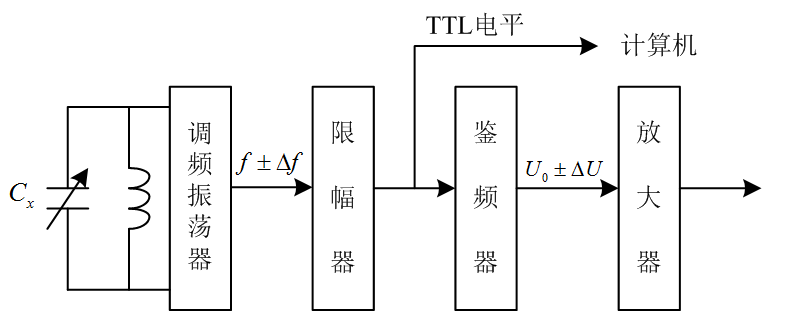 将电容式传感器作为LC振荡电路的一部分,或作为晶体振荡器中的石英晶体的负载电容。当电容传感器工作时,电容Cx发生变化,就使振荡器频率发生f产生相应的变化。由于振荡器频率受电容式传感器电容的调制,这样就实现了C/f的变换,故称为调频电路。