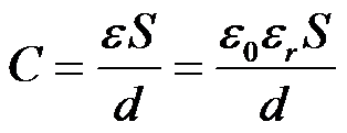 电容器有很多种,下面以图5-13所示的平行板电容器为例。根据电工常识,平行板电容器的电容(忽略边缘效应),可以用下式表示: