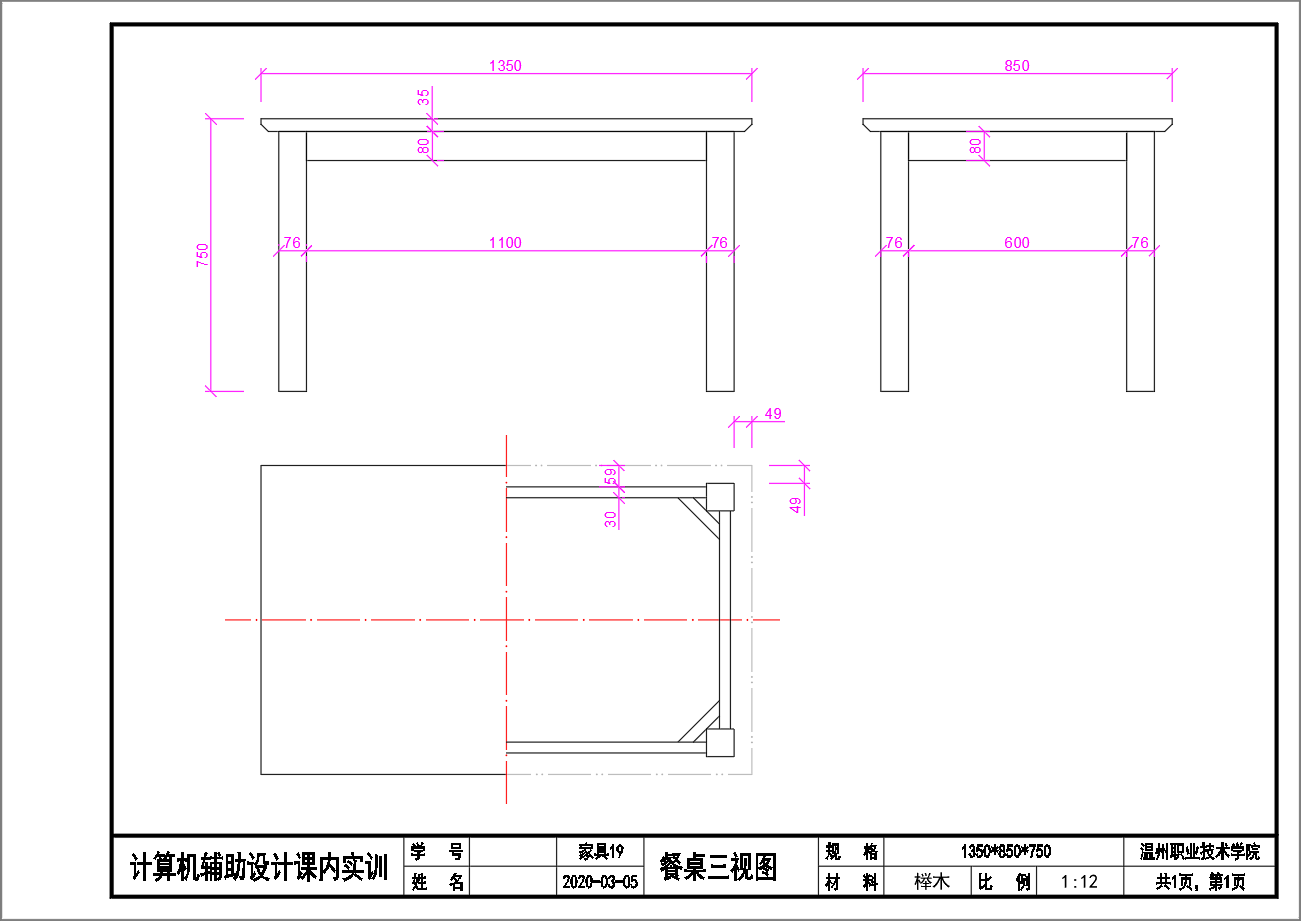 绘制餐桌三视图