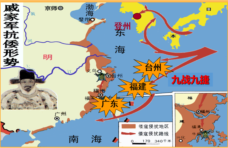 了解戚继光抗倭的事迹,正确认识戚继光抗倭在中华民族反侵略斗争中的重要地位。引导学生综合评价戚继光为民族英雄,以提高学生评价历史人物的能力。