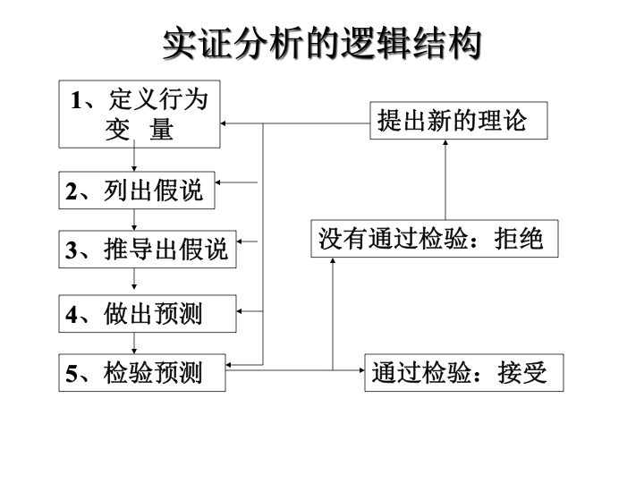 Ø规范经济学:考察事物之间不论是否有因果关系,而应该怎样(What ought to be )行动的问题。它会从“现有的事实”,推导出“应当如何”的逻辑结构。