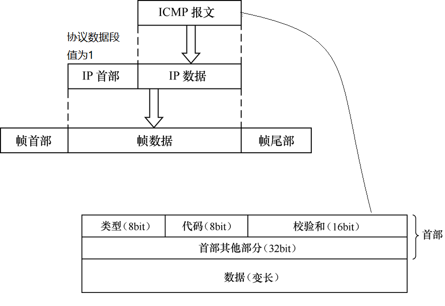 ICMP报文是以IP数据报形式进行传递的,即ICMP报文本身被封装在IP数据报的数据区中。ICMP虽然是IP层的协议,但是从报文格式来说属于是IP 的上层协议。