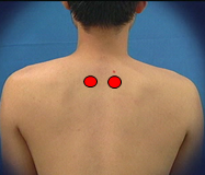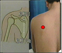 位置:肩胛骨岗下窝的中央。肩胛冈中点与肩胛骨下角连线上1/3与下2/3交点凹陷中。
