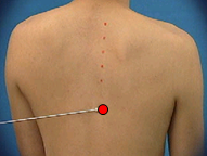 位置:正中线上,第七胸椎棘突下凹陷中。平两肩胛骨下角连线。