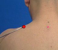 位置:肩上,前直乳中,当大椎与肩峰端连线的中点上。