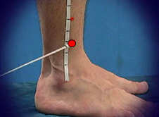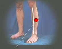 位置:外踝尖上八寸,胫骨前嵴外二横指。从膝中即外膝眼的部位到外踝尖作一直线,直线的一半就是8寸,然后从胫骨前嵴向外量二横指处,就是该穴。