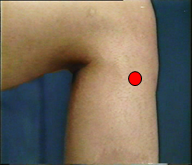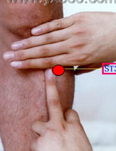 位置:大腿内侧,髌骨内上缘上2寸,当股四头肌内侧头的隆起处。屈膝,左手掌心按于右膝髌骨上,拇指与四指约呈45度,虎口向前,拇指尖下是穴。