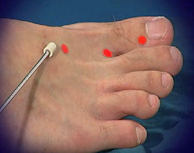 位置:在足背部,当第一、二跖骨结合部前的凹陷处。足背大拇趾是第一趾,由大拇趾向外数,在第一、二趾缝之间向上推,推至趾骨结合部之间的凹陷处。