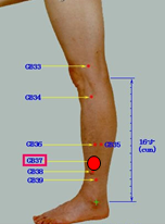 位置:在小腿外侧,当外踝尖上3寸,腓骨前缘。