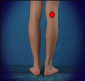 再由外膝眼(犊鼻穴),向下量四横指为三寸;再由胫骨前脊,即胫骨前面的突出向外量一横指,就是足三里穴的所在,两个脚各有一个穴位,在小腿的外侧定穴。