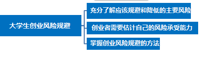 创业风险在所难免,对于没有多少经验的大学生来说,怎样才能有效的避开创业风险呢?这就需要我们掌握一定的方法,在风险发生之前就能通过调整或重组等方式来改变经营过程中的某些问题,预防和分散风险以降低发生的概率和带来损失。此外,还要结合对机会风险的估计,找出规避和降低风险的关键点,就特定的创业机会,分析和判断创业风险的具体来源、发生概率、预期主要风险因素,测算冒险创业的“风险收益”,估计自己的风险承受能力,进而进行风险决策。