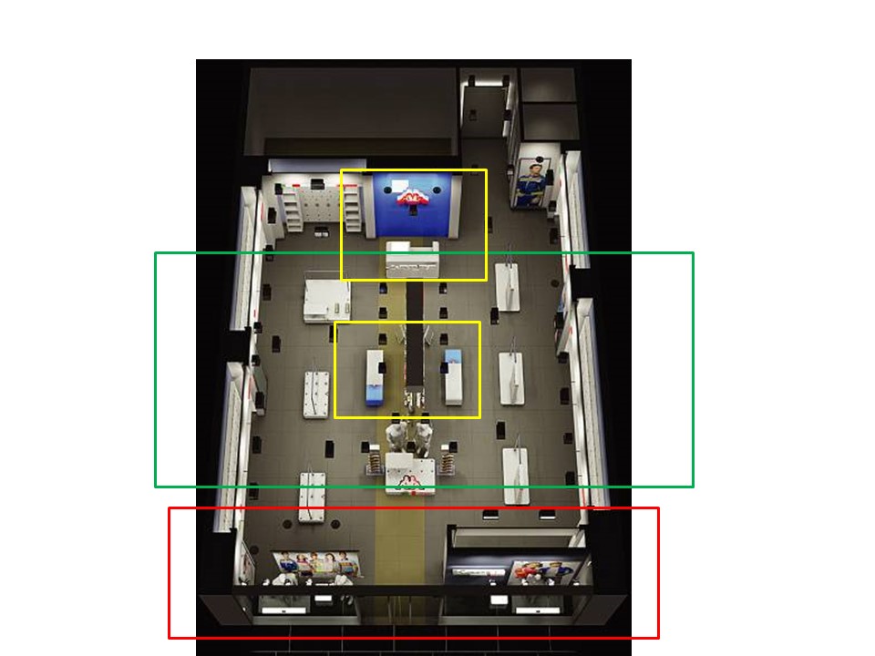 5)、他们在货架前注意力往往集中在右上方的货品上