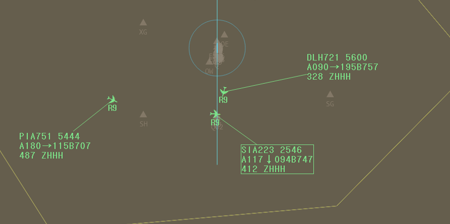 如下图所,若通过调整航空器航向解决冲突,应如何调整,应发布哪些雷达引导指令?