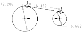 (3)系统提示“在弧或圆上选取结束位置。”时,移动鼠标,在另一个圆或圆弧适当位置单击,系统将自动捕捉切点,创建一条公切线,如图2.10所示;