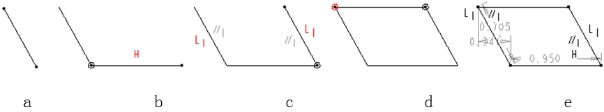 如图2.8所示,为绘制平行四边形的操作过程。其中约束符号H表示水平线、∥1表示绘制两条平行线,L1表示两线长度相等, 表示创建相同点。图2.8(e)所示为最终的草图。