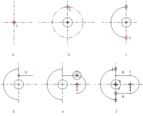 (2)移动鼠标,在两条中心线交点处单击,确定圆的圆心位置,如图2.16(a)所示的点1;