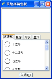 草绘器调色板是一个具有若干个选项卡的几何图形库,系统含有四个预定义的选项卡:多边形、轮廓、形状、星形,每个选项卡包含若干同一类别的截面形状。用户可以向调色板添加选项卡,将截面形状按类别放入选项卡内,并且随时使用调色板中的形状。